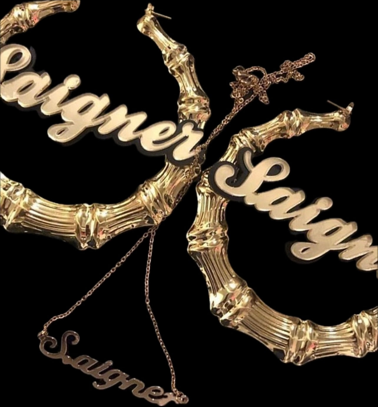 This custom set includes a pair of bamboo earrings and necklaces. Please email us with the desired name for your earrings and necklace. This set is non-tarnish and nickel-free, and the estimated shipping time is 3-4 weeks.